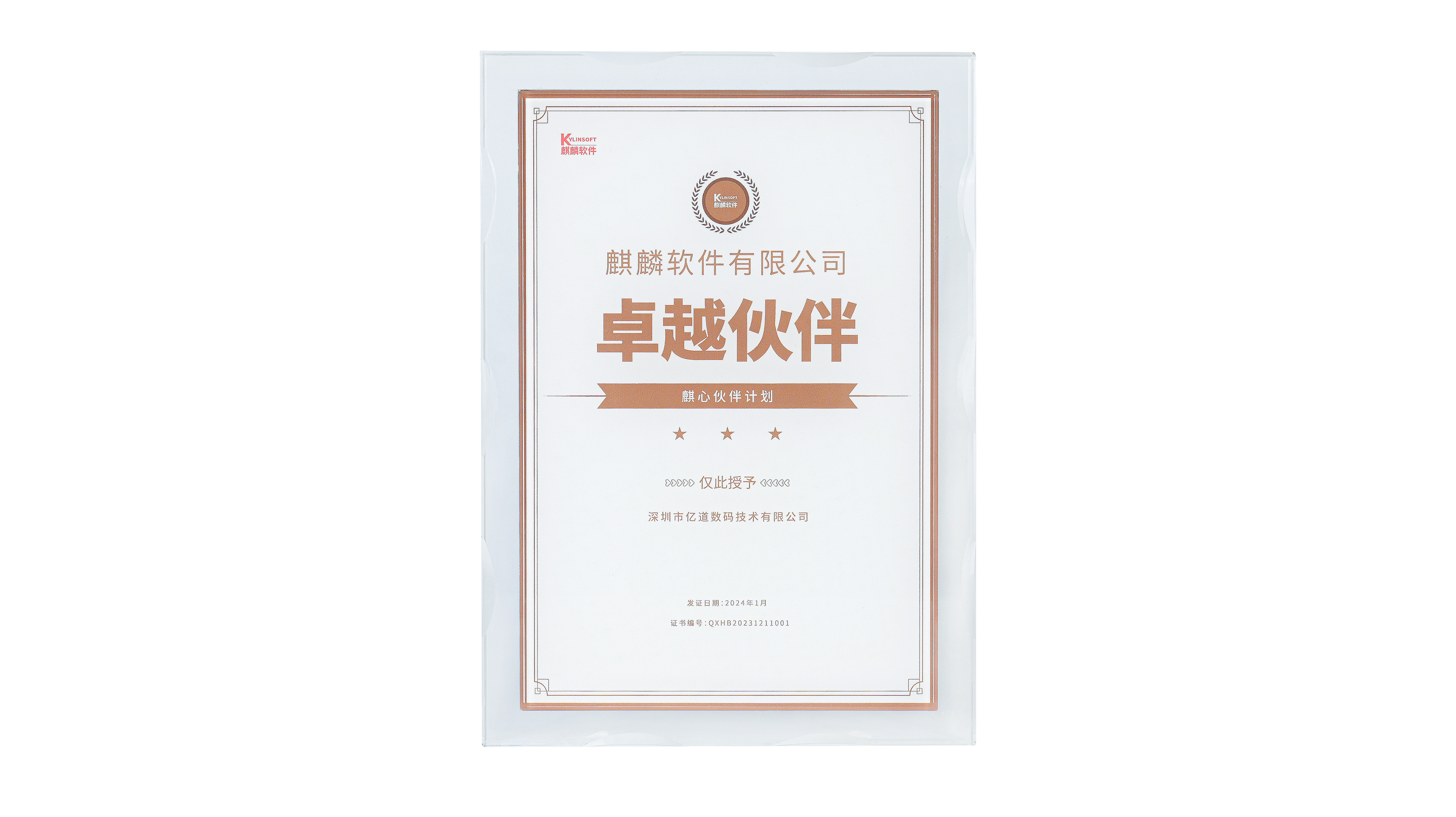 億道數碼榮獲麒麟軟件“卓越伙伴”獎